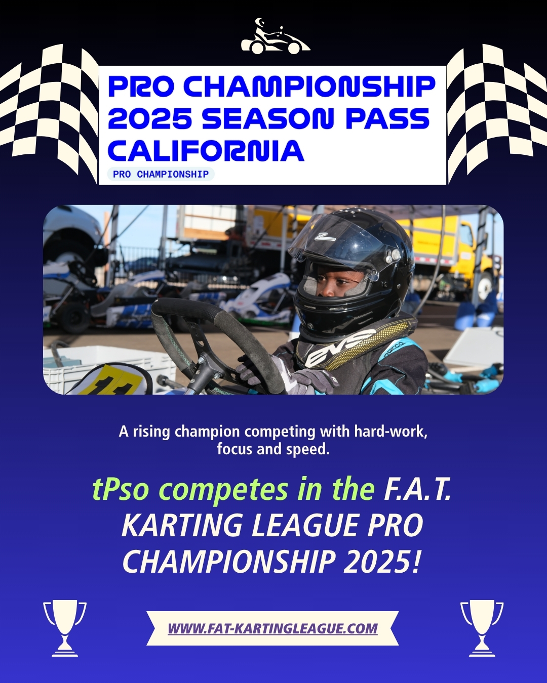 The Pro Championship 2025 kicks off across Willow Springs and Adams Motorsport Park, featuring top young racers from California. tPso will compete in the Bambino category, showcasing his speed and skill as he aims for a podium finish and a shot at the World Finals. Check out F.A.T. Karting League